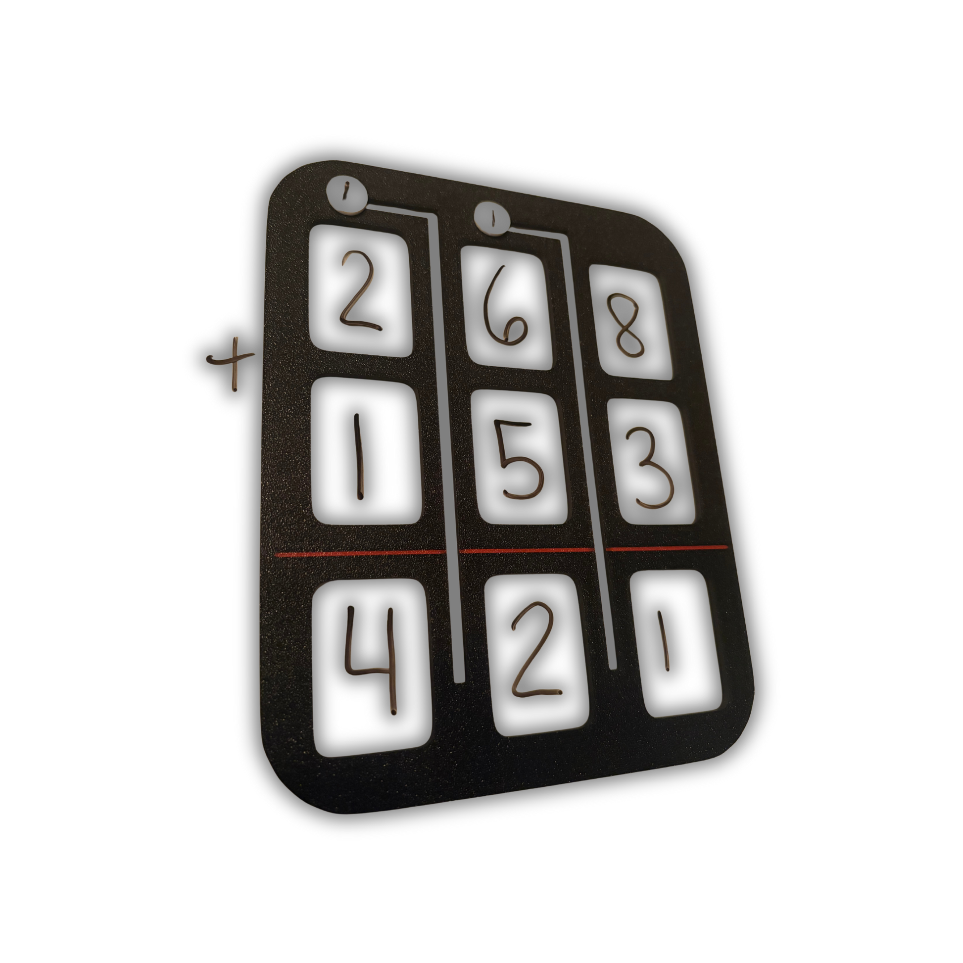 Le gabarit d’opérations (+ / -) est un outil pédagogique conçu pour aider les élèves à poser et résoudre des additions et des soustractions de manière claire et concrète.