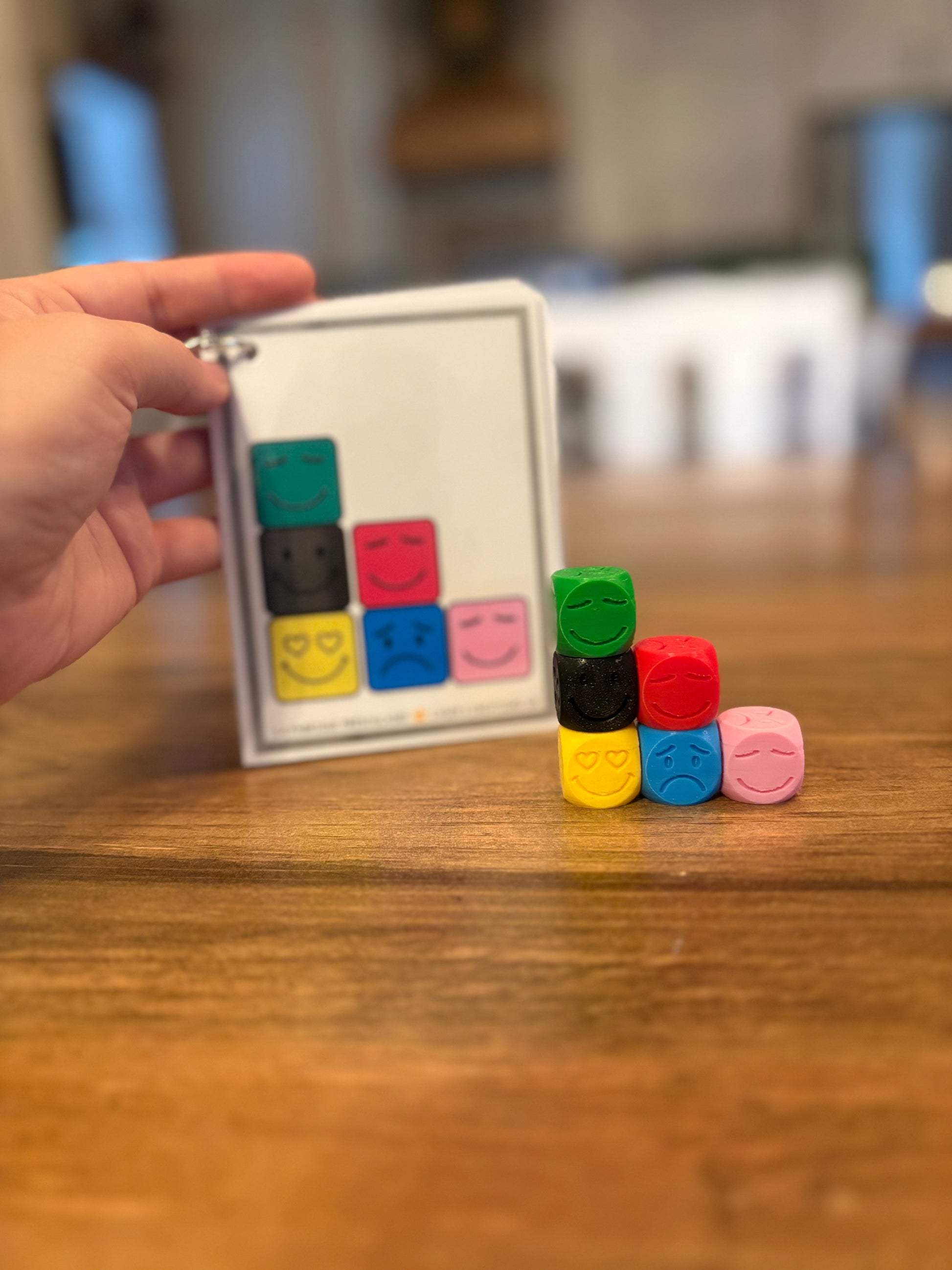 Découvrez notre ensemble de 6 dés colorés des émotions, parfait pour accompagner les apprentissages socio-émotionnels des jeunes enfants ! Chaque dé représente les 6 émotions distinctes, identifiables par son expression faciale et sa couleur vive :